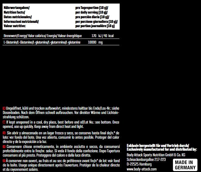 Meil on tules tõeliselt kuum raud – palju läiget teie lihaste kasvufaasis taastumiseks: meie 100% puhas L-glutamiin veenab teid ja teie lihaseid parima väärtusega. Kas soovite panustada? Meie glutamiinipulber avaldab muljet oma ülipeene, välkkiirelt lahustuva, vegan- ja laktoosivaba koostisega – ideaalne proteiinikokteilis veega segamiseks! Et saaksite põletava isuga haarata uue kuuma raua.